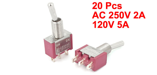 AC 250V 2A 120V 5A ON-ON SPDT Rocker Type Toggle Switch 20 Pcs