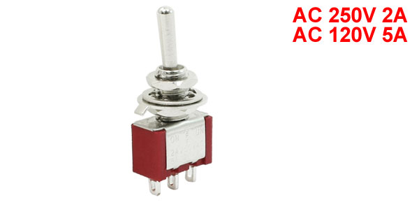 Product Name Toggle Switch Contact Type SPCO(Single Pole Center Off) Number of Position 3(ON/OFF/ON) Rating AC 250V 2A