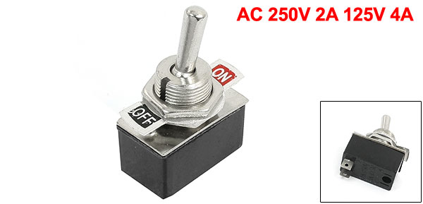 Product Name Toggle Switch Type SPST(Latching) Position ON-OFF 2 Postion Voltage & Current AC 250V 2A ,125V 4A Main Body Size 4.2 x 2.5 x 1.4cm/1.6" x 1" x 0.55"(L*W*T) Thread Dia 12mm Material Metal, Plastic Weight 15g Package Content 1 Pcs x Toggle Switch - Reviews