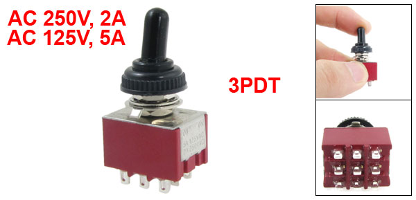 Feature Waterproof Rubber Boot Pin Number 9 Pins Position 2 Positions(ON/ON) Type 3PDT Cap Diameter 13.6mm / 0.5" Body Size(Approx.) 18 x 13 x 12mm / 0.7" x 0.5" x 0.47"(L*W*T) Total Height 36mm / 1.4" Material Plastic, Metal Weight 10g Package Content 1 x Toggle Switch - Reviews