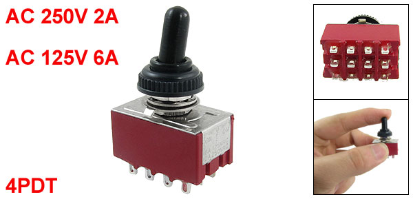 AC 250V 2A 125V 6A on/off/on 4P2T 4PDT 12 Pins Toggle Switch w Waterproof Boot