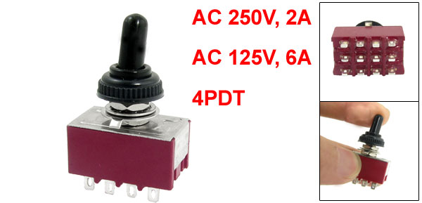 DetailsAC 250V 2A 125V 6A on/on 2 Position 4P2T 4PDT Toggle Switch w Waterproof Boot  Product Name Toggle Switch Rated Voltage & Current