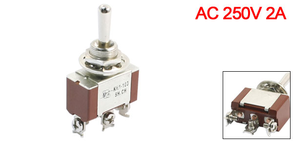 Product Name Toggle Switch Model KN1-103 Type SPDT Rated Voltage & Current AC250V 2A Position 3 Position(ON/OFF/ON) Mounting Hole Diamter 12mm / 0.47" Main Body Size 29 x 15 x 18mm / 1.1" x 0.59" x 0.71"(L*W*H) Overall Height 57mm / 2.2" Material Metal & Resin Color As Picture Shown Weight 34g Package Content 1 x Toggle Switch - Reviews
