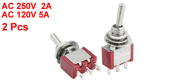 AC 250V 2A SPDT 3 Pin ON/ON Latching Control Toggle Switches 2pcs