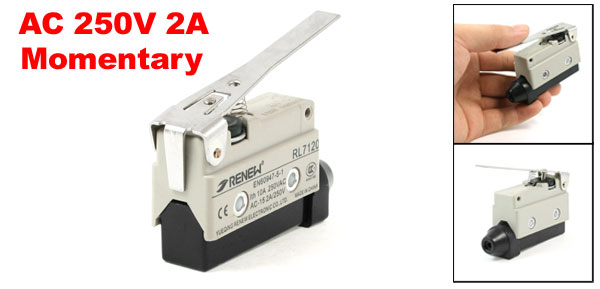 Product Name Limit Switch Model No. RL-7120 Actuator Type Long Straight Hinge Lever Contact Type 1 NO 1 NC 1 Com(SPDT) Ui 250V Ith 10A AC-15 Ue: 250V, le: 2A Lever Length 76mm/3" Body Size(Approx.) 54 x 37 x 21mm / 2.1" x 1.5" x 0.8"(L*W*H) Hole Diameter 4.3mm/0.2" Hole Center Distance 25mm/1" Material Metal, Plastic & Rubber Net Weight 56g Package Content 1 x Limit Switch - Reviews