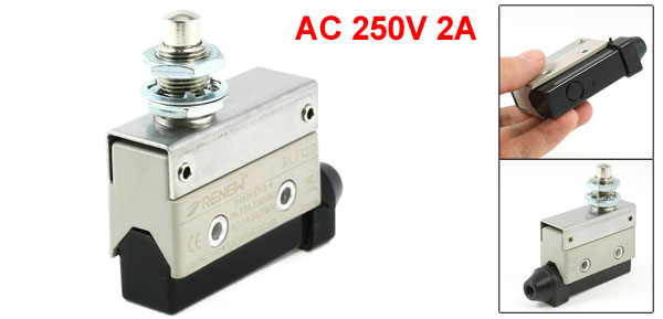 Product Name Limit Switch Model No. RL-7310 Actuator Type Panel Mounted Plunger Actuator Action Momentary Contact Type 1 NO 1 NC 1 Com(SPDT) Ui 250V Ith 10A AC-15 Ue: 250V, le: 2A Thread Diameter 12mm/0.5" Plunger Diameter 8mm/0.3" Body Size(Approx.) 54 x 41 x 21mm / 2.1" x 1.6" x 0.8"(L*W*H) Overall Height 65mm/2.5" Hole Diameter 4.4mm/0.2" Hole Center Distance 25mm/1" Material Metal, Plastic & Rubber Net Weight 83g Package Content 1 x Limit Switch - Reviews