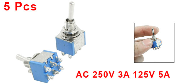 Product Name Toggle Switch Rating AC 250V 3A 125V 5A Pin Number 6 Pins Position 2(On/On) Type DPST Screw Diameter 5.7mm / 0.224" Total Size(Approx.) 3.3 x 1.3 x 0.75cm / 1.3" x 0.5" x 0.3"(L*W*T) Weight 28g Package Content 5 x Toggle Switch - Reviews