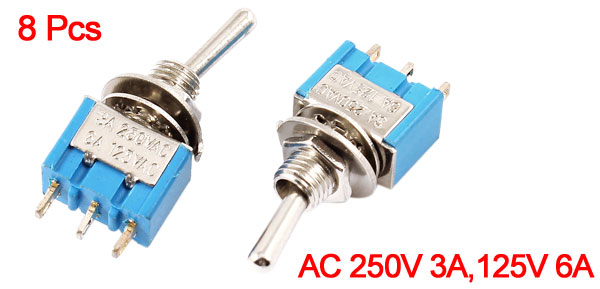 AC 250V 3A 125V 6A ON/ON 2 Position 3 Terminals SPDT Toggle Switch 8 Pcs