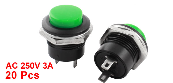 Item Name Push Button Switch Model R13-507 Action Type Momentary Contact Type SPST Button Color Green Rate Voltage & Current AC 250V 3A Mount Hole Diameter 16mm / 0.63" Size 19 x 25mm/ 0.75" x 1"(D*L) Material Plastic, Metal Net Weight 109g Package Content 20 x Push Button Switch - Reviews