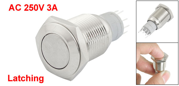 Item Name Stainless Push Button Switch Operation Type Latching Head Shape Flat Head Contact SPDT(1NO 1NC) Switch Rating AC 250V 3A Pin Number 5 Thread Diameter 16mm/0.6'' Total Size 38 x 22mm/1.55'' x 0.9''(L*Max.W) Material Stainless Steel, Electric Parts Housing Color Silver Tone Net Weight 16g Package Content 1 x Stainless Push Button Switch - Reviews
