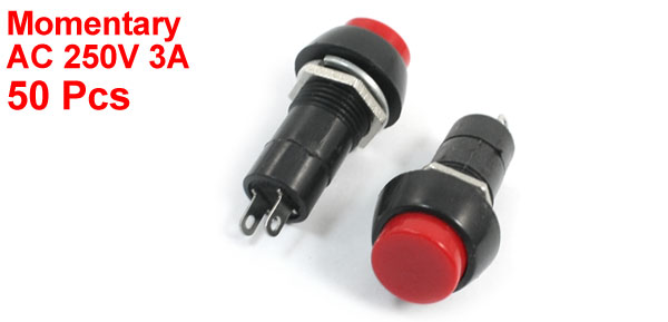 AC 250V 3A 2 Pin SPST Momentary Control Red Round Push Button Switch 50Pcs