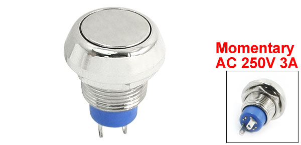 Item Name Push Button Switch Action Type Momentary Contact Type SPST Voltage AC 250V 3A Button Diameter 1.1cm / 0.43" Thread Diameter 12mm / 0.47" Pin Spacing 3mm / 0.12" Total Size 1.9 x 1.7cm / 0.75" x 0.7"(L*Max.D) Material Stainless Steel Weight 12g Package Content 1 x Push Button Switch - Reviews