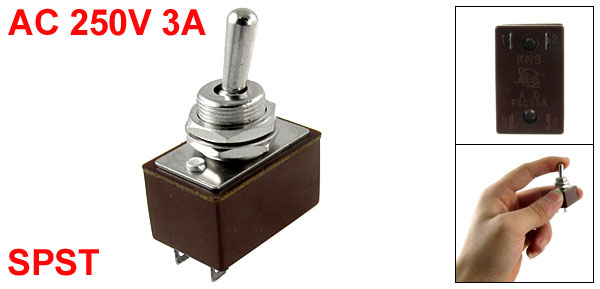 Product Name Toggle Switch Type SPST(Latching) Position 2 Positions(ON/OFF) Mounting Hole Diameter 12mm / 0.47" Rated Voltage & Current AC 250V, 3A Terminals 2 Pins Main Body Size 29 x 18 x 16mm / 1.1" x 0.7" x 0.6"(L*W*H) Overall Height 45mm / 1.8" Material Metal & Resin Weight 23g Package Content 1 x Toggle Switch - Reviews