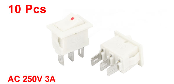Main Color White Product Name Rocker Switch Brand Assisi Net Weight 20g Terminals 3 Pin (ON-OFF) Country of Manufacture CHINA Package Content 10 x Rocker Switch Material Plastic,Metal Total Size 20 x 15 x 10mm/0.8" x 0.6" x 0.4"(L* W *T) Rating Voltage AC 250V 3A - Reviews