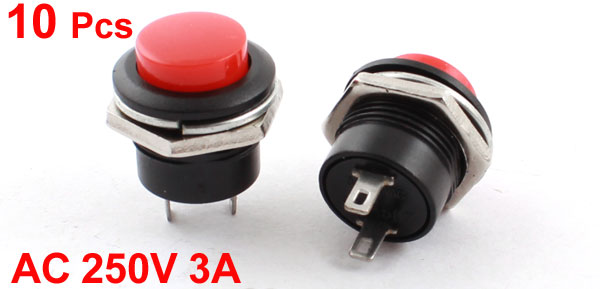 AC 250V 3A Panel Mount SPST 2-Pin Momentary Red Head Push Button Switch 10 Pcs