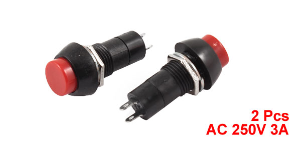 Item Name Push Button Switch Action Type Latching Contact Type SPST Voltage AC 250V 3A Button Color Red Button Diameter 1.2cm / 0.47" Thread Diameter 11.4mm / 0.45" Pin Spacing 4.3mm / 0.17" Total Size 3.9 x1.8cm / 1.5" x 0.7"(L*Max.D) Material Plastic, Metal Weight 10g Package Content 2 x Push Switch - Reviews