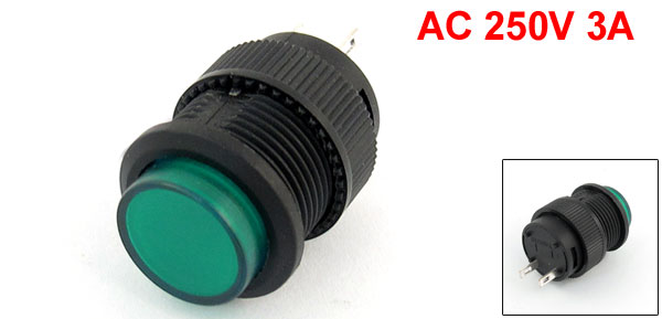 Product Name Push Button Switch Contact Type 1NO 1NC (SPST) Action Type Momentary Max. Current & Voltage 3A 250 Terminal Quantity 2 Panel Cutout Diameter 15.5mm / 0.61" Fit Panel Max. Thickness 8mm / 0.31" Button Diameter 1.3cm / 0.5" Total Size(Approx) 1.8 x 3cm / 1.3" x 1.2" (D*H) External Material Plastic, Electronic Parts Button Color Green,Black Net Weight 64g Package Content 1 x Push Button Switch - Reviews