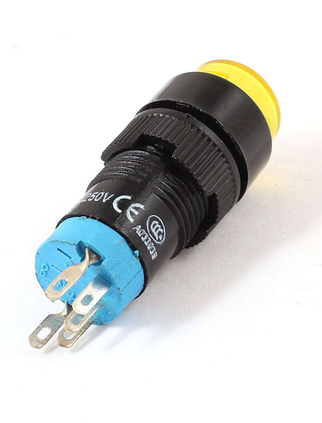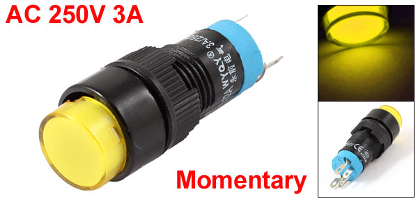 Item Name Push Button Switch Contact Type Momentary; SPDT Working Voltage AC 250V,3A Buttom Color Yellow Mounting Thread Diameter 12mm / 0.47" Button Cap Dia 12mm /0.47" Terminals 5 Pin Overall Size 3.9 x 1.4cm/1.5" x 0.55"(L*D) Material Plastic, Electronic Parts Weight 4g Package Content 1 Pcs x Push Button Switch - Reviews