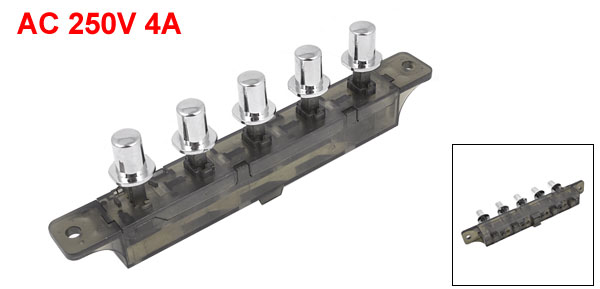 Product Name Key Board Switch Model No. MQ205 Fit for Kitchen Hood/Range Hood Button Number 5 Voltage/ Current AC 250V 4A Overall Size 130 x 15 x 40mm/ 5.1" x 0.6" x 1.6" (L*W*H) Fixing Hole Diameter 4mm/0.16" Fixing Hole Center Distance 105mm/4.1" Material Plastic, Metal Color Silver Tone, Gray Net Weight 25g Package Content 1 x Piano Type Key Board Switch - Reviews