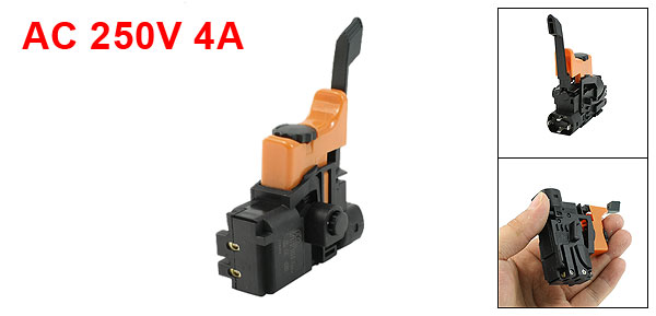 Product Name Electric Tool Switch Model No. FA2-4/2BEK-2 Action Type Normally Open Lock Type Lock on(Manual Operation) Technical Parameter AC 250V 4A Size 6.5 x 3.5 x 9cm/ 2.6" x 1.4" x 3.5" (L*W*H) Material Plastic, Metal Color Black, Orange Net Weight 44g Package 1 x Electric Tool Switch - Reviews