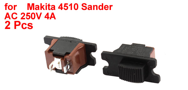 Product Name Slide Switch Fit for Makita 4510 Sander Working Power AC 250V 4A Contact Type SPST ON-OFF Size 3 x 1.3 x 2.6cm / 1.2" x 0.5" x 1" (L*W*H) Material Plastic, Metal Main Color Black, Dark Red Weight 13g Package 2 x Slide Switch(non-OEM) - Reviews