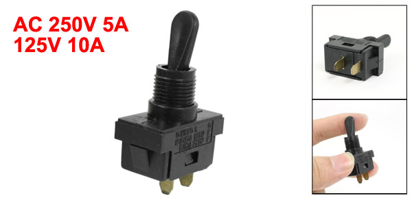 Product Name Toggle Switch Model No. FU2-4/1 Position Type SPST Technical Parameter AC 250V 5A, AC 125V 10A Screw Thread Dia 11mm Size 2.8 x 1.5 x 5.3cm/ 1.1" x 0.6" x 2.1" (L*W*H) Material Plastic, Metal Color Black Weight 8g Package 1 x Toggle Switch - Reviews