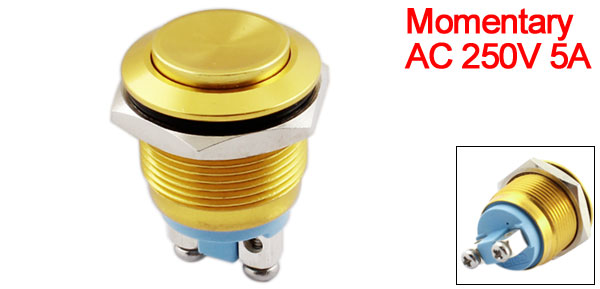 Main Color Gold Tone Brand Assisi Country of Manufacture CHINA Terminal Quantity 2 Material Metal Contact Type NO Total Size 30 x 25mm(L*Max.D) Product Name Push Button Switch Net Weight 15g Pole and Throw SPST Package Content 1 x Push Button Switch Mounting Size 19mm Switch Rating AC 250V 5A Oeperation Type Momentary - Reviews