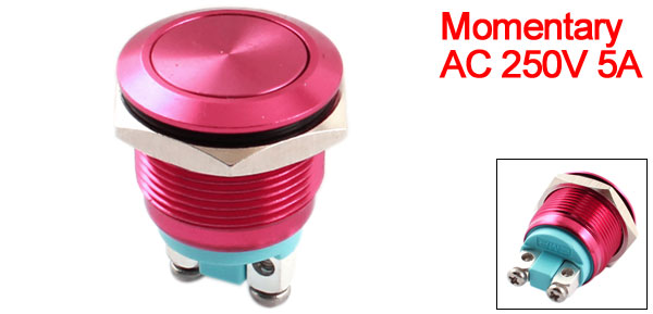 Main Color Red Brand Assisi Country of Manufacture CHINA Terminal Quantity 2 Material Metal, Electric Parts Contact Type NO Total Size 28 x 25mm/1.1" x 1" (L*Max.D) Product Name Push Button Switch Net Weight 15g Mounting Size 19mm Pole and Throw SPST Package Content 1 x Push Button Switch Mounting Type Flush Mount Switch Rating AC 250V 5A Oeperation Type Momentary - Reviews