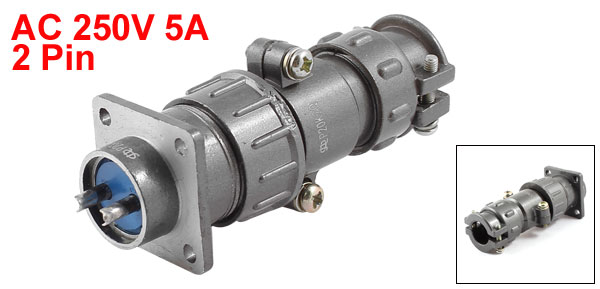 AC 250V 5A 20mm Thread Dia Flange Mounting 2 Pin Metal Aviation Plug Connector