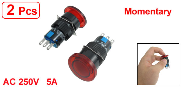Product Name Push Button Switch Action Type Momentary Contact Type 1NO+1NC Voltage AC 250V Current 5A Terminals 3 Pins Button Diameter 23mm / 0.9" Mounting Hole Diameter 15.6mm / 0.61" Total Size 17 x 17 x 42mm / 0.7" x 0.7" x 1.7"(L*W*H) Color Red Material Plastic, Electric Parts Net Weight 16g Package Content 2 x Push Button Switch - Reviews