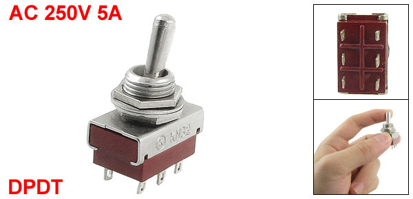 AC 250V 5A Amps ON/ON 2 Position 2P2T DPDT Toggle Switch 6 Terminals