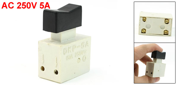 Product Name Electric Tool Switch Model No. DKP-5A Fit for Hand Electric Drill Action Type DPST, Normally Open Lock Type Momentary Technical Parameter AC 250V 5A Size 34 x 19 x 47mm/ 1.3" x 0.7" x 1.9" (L*W*H) Material Plastic Color Black, White Net Weight 20g Package 1 x Electric Tool Switch - Reviews
