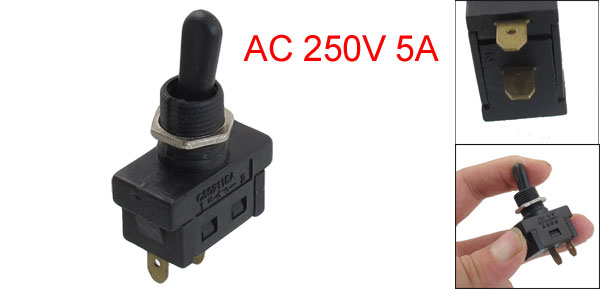 Product Name Toggle Switch Model FD2-5/1F Action Type Latching Contact Type SPST NO Number of Position 2(ON/OFF) Voltage/Current AC 250V 5A Thread Diameter 11.5mm/ 0.45" Pins Distance 10.5mm/ 0.41" Suitable Board(Max) 9mm/ 0.354"(Adjustable) Size 2.9 x 1.5 x 5.2cm/ 1.14" x 0.59" x 2.05" (L*W*H) Material Plastic, Matel Color Black, Silver Tone Weight 11g Package 1 x Toggle Switch - Reviews