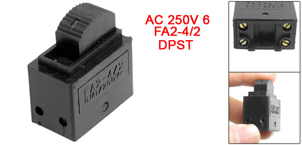 Product Name Electric Tool Switch Model FA2-4/2 Fit for Dragon Electric Grinder Action Type Latching Contact Type DPST O/I Rated Power AC 250V 6(4A) Size 3 x 1.7 x 3.3cm / 1.2'' x 0.7'' x 1.3'' (L*W*H) Material Plastic, Metal Main Color Black Net Weight 14g Package 1 x Electric Tool Switch - Reviews