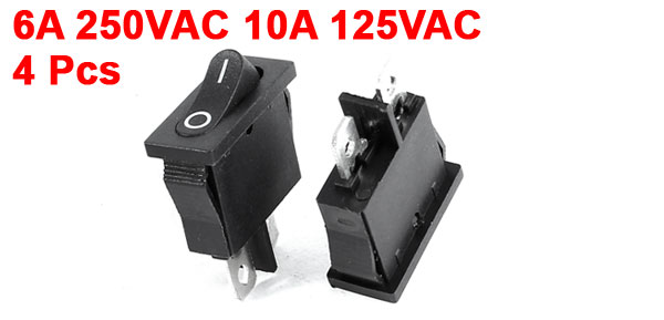 AC 250V 6A 125V 10A 2 Termials SPST ON/OFF 2 Positions Rocker Switch Black 4 Pcs