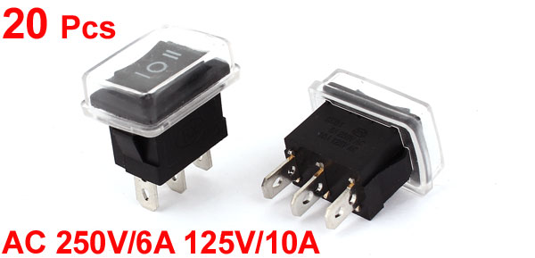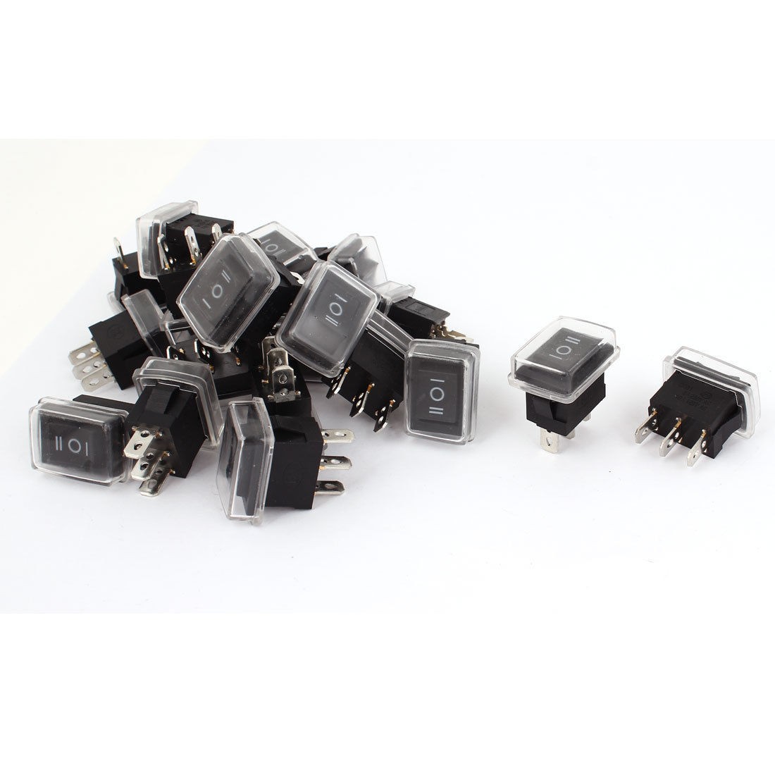 AC 250V/6A 125V/10A 3 Pin ON/OFF/ON SPDT Waterproof Rocker Boat Switch 20PCS