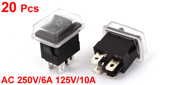 AC 250V/6A 125V/10A 4 Pin DPST 2 Positions Waterproof Rocker Boat Switch 20PCS