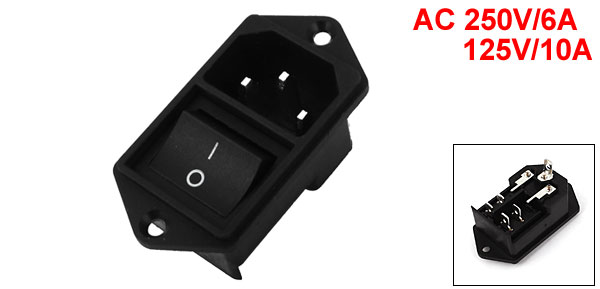 Main Color Black Brand DMiotech Net Weight 21g Total Size(Each) 5.9 x 3 x 3cm/2.3" x 1.2" x 1.2"(L*W*H) Country of Manufacture CHINA Package Content 1 x Power Socket Rocker Switch Type 4Pin; DPST Voltage & Current AC 250V/6A 125V/10A Plug Type IEC320 C14 Material Plastic, Metal Mount Size 4.2 x 2.7cm/1.7" x 1.1"(L*W) - Reviews