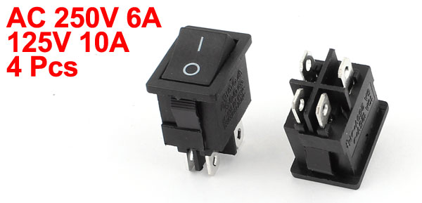 AC 250V 6A 125V 10A Car DPST ON-OFF 2 Position 4pin Rocker Switch 4Pcs