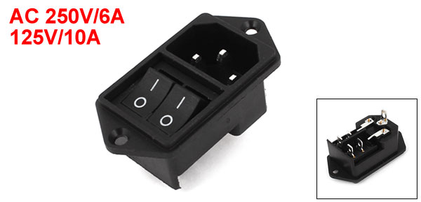 AC 250V/6A 125V/10A Double On-Off Rocker Switch IEC320 C14 Inlet Power Socket
