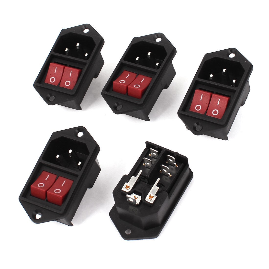 Main Color Black,Red Net Weight 102g Brand DMiotech Total Size(Each) 5.9 x 3 x 3cm/2.3" x 1.2" x 1.2"(L*W*H) Country of Manufacture CHINA Package Content 5 x Power Socket Rocker Switch Type 4Pin; DPST Voltage & Current AC 250V/6A 125V/10A Plug Type IEC320 C14 Material Plastic, Metal Position On-Off Mount Size 4.2 x 2.7cm/1.7" x 1.1"(L*W) - Reviews