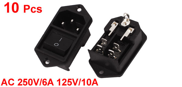 AC 250V/6A 125V/10A On-Off Rocker Switch IEC320 C14 Inlet Power Socket 10PCS