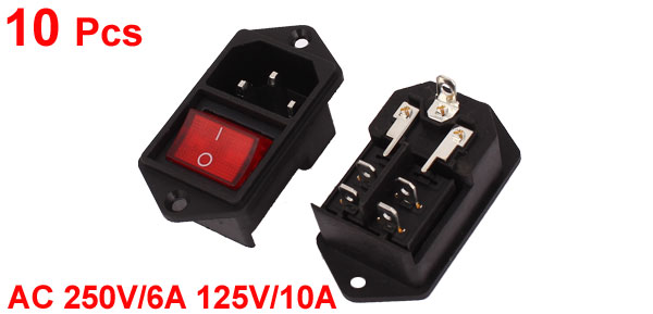 Main Color Black,Red Net Weight 211g Brand DMiotech Total Size(Each) 5.9 x 3.1 x 3cm/2.3" x 1.3" x 1.2"(L*W*H) Country of Manufacture CHINA Package Content 10 x Power Socket Light Color Red Rocker Switch Type 4Pin; DPST Voltage & Current AC 250V/6A 125V/10A Plug Type IEC320 C14 Material Plastic, Metal Mount Size 4.2 x 2.7cm/1.7" x 1.1"(L*W) - Reviews