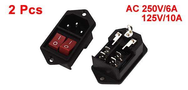 AC 250V/6A 125V/10A Twin On/Off Rocker Switch IEC320 C14 Inlet Power Socket 2PCS