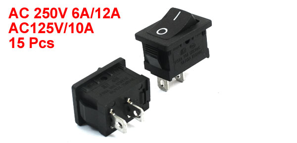 AC 250V 6A/12A 125V/10A 2 Pin I/O 2 Position SPST Boat Rocker Switch 15 Pcs
