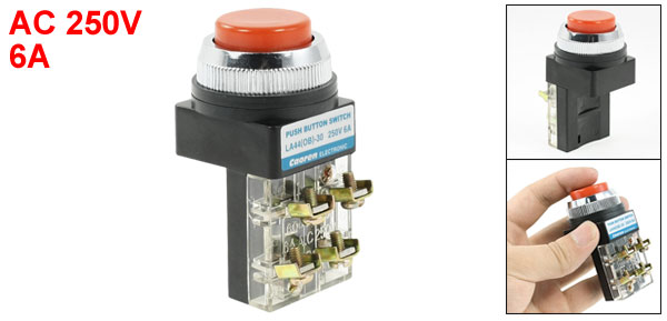 Product Name Push Button Switch Contact Type 1NO, 1NC Working Voltage & Electricity AC 250V, 6A Max Voltage 600V Terminal Quantity 4 Panel Cutout Diameter 29mm / 1.14" Fit Panel Max. Thickness 6mm / 0.24" Total Size(Approx) 7 x 4 x 3.5cm / 2.8" x 1.6" x 1.4" (L*W*H) External Material Plastic, Electric Parts Color Black, Red Net Weight 53g Package Content 1 x Push Button Switch - Reviews