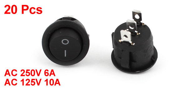AC 250V 6A AC 125V 10A 3Pins Snap in SPDT Round Rocker Switch 20 Pieces