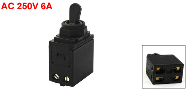 AC 250V 6A DPST 4 Terminals Self Locking 2 Position Toggle Switch
