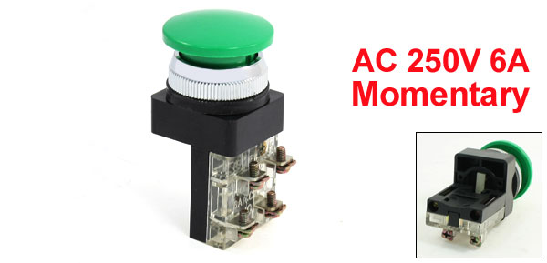 AC 250V 6A Pannel Mount Momentary Green Push Button Switch NO NC DPST