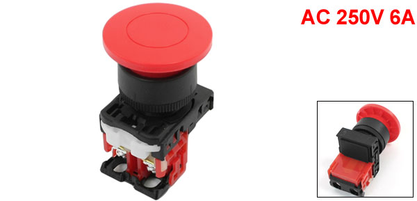 AC 250V 6A Red Mushroom Button Momentary Pushbutton Switch NC SPST